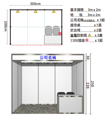 1 個展示攤位 (含 1 位參加年會宴) | NTD 35,000 元 | ◆ 攤位 300 cm x 200 cm;設置二個以上攤位可享 8 折優惠。 ◆ 大會提供: 1. 租用一個展示攤位,贈送大會手冊內半頁彩色廣告。(文稿由廠商自行提供) 2. 租用二個以上攤位,贈送大會手冊內全頁彩色廣告。(文稿由廠商自行提供)